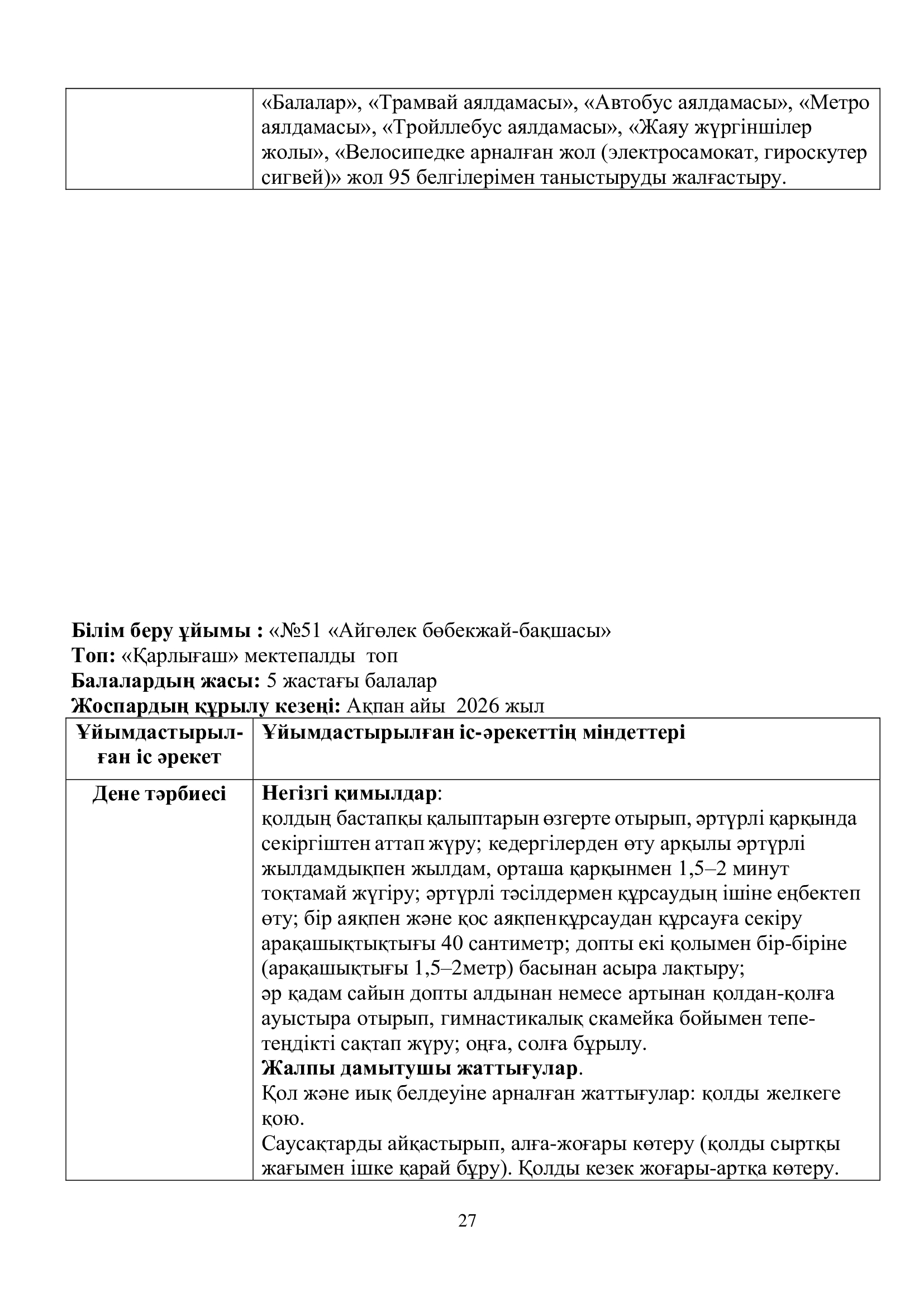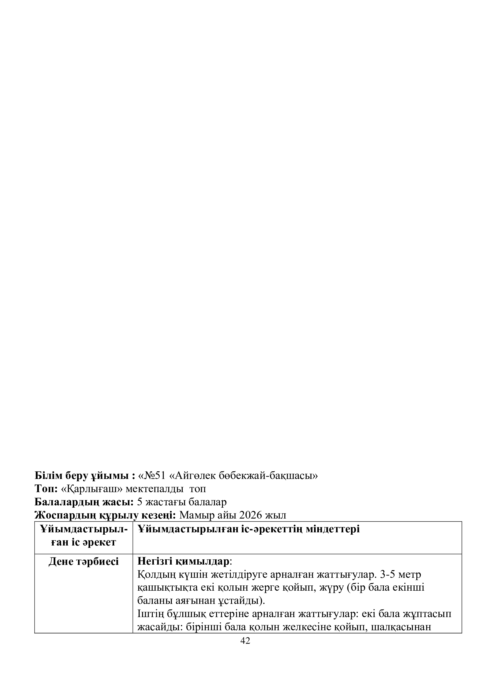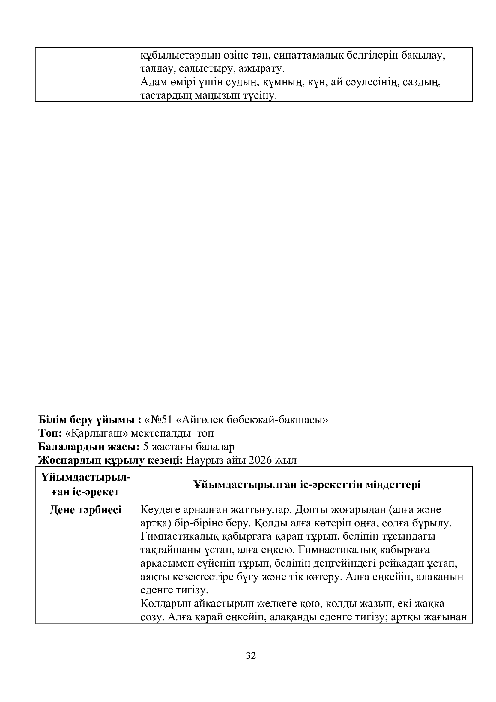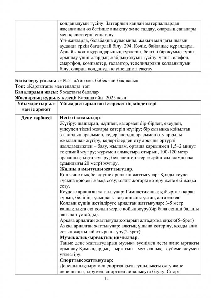 «№51 «Айгөлек» бөбекжай-бақшасы» » Тәрбиелеу-білім беру процесі » ПЕРСПЕКТИВАЛЫҚ ЖОСПАР » Мектепке дейінгі тәрбие мен оқытудың үлгілік оқу жоспары және мектепке дейінгі тәрбие мен оқытудың оқу бағдарламасы негізінде 2025-2026 оқу жылына арналған ұйымдастырылған іс-әрекетінің перспективалық жоспары мектепалды "Қарлығаш" топ