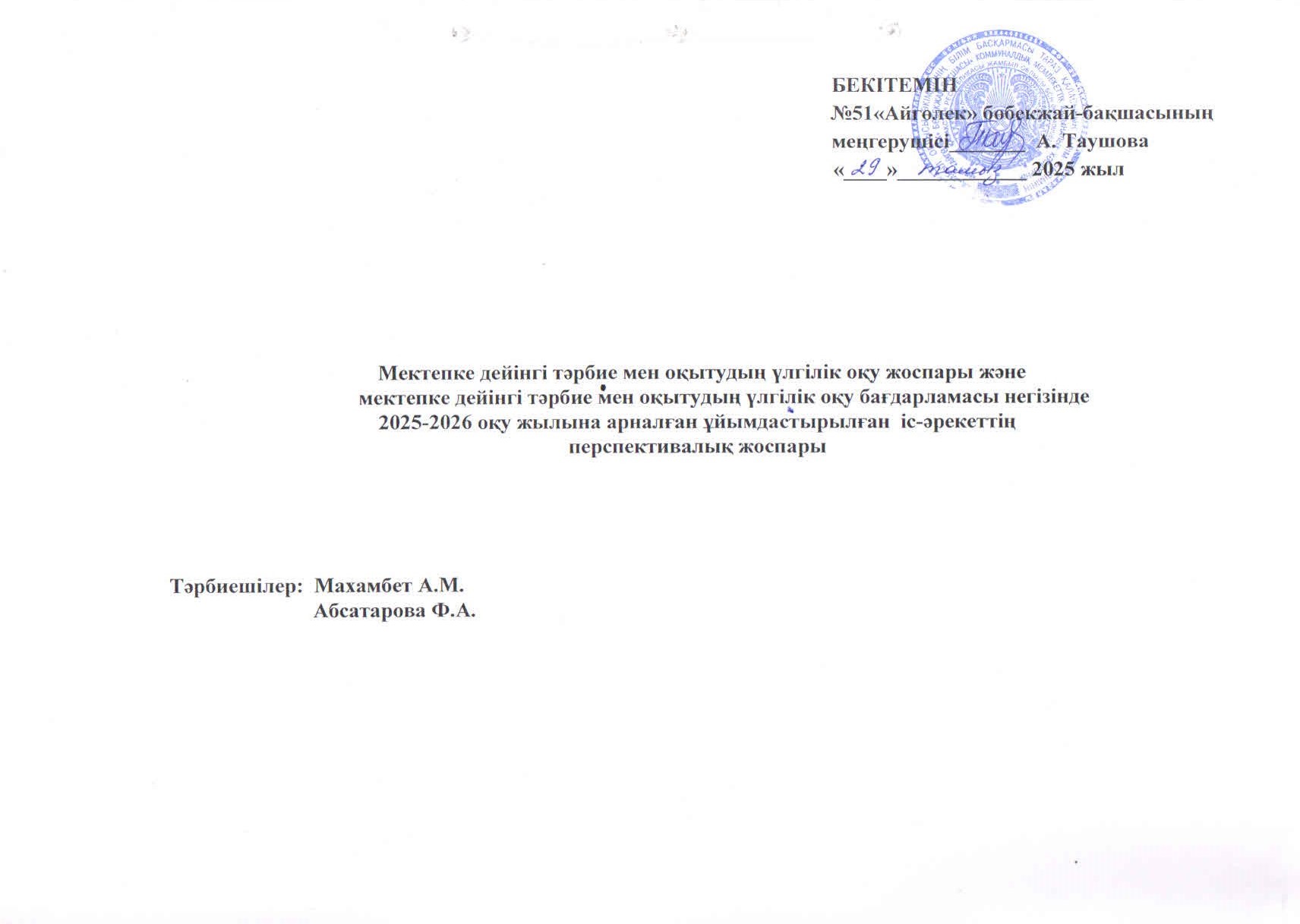 ПЕРСПЕКТИВАЛЫҚ ЖОСПАР