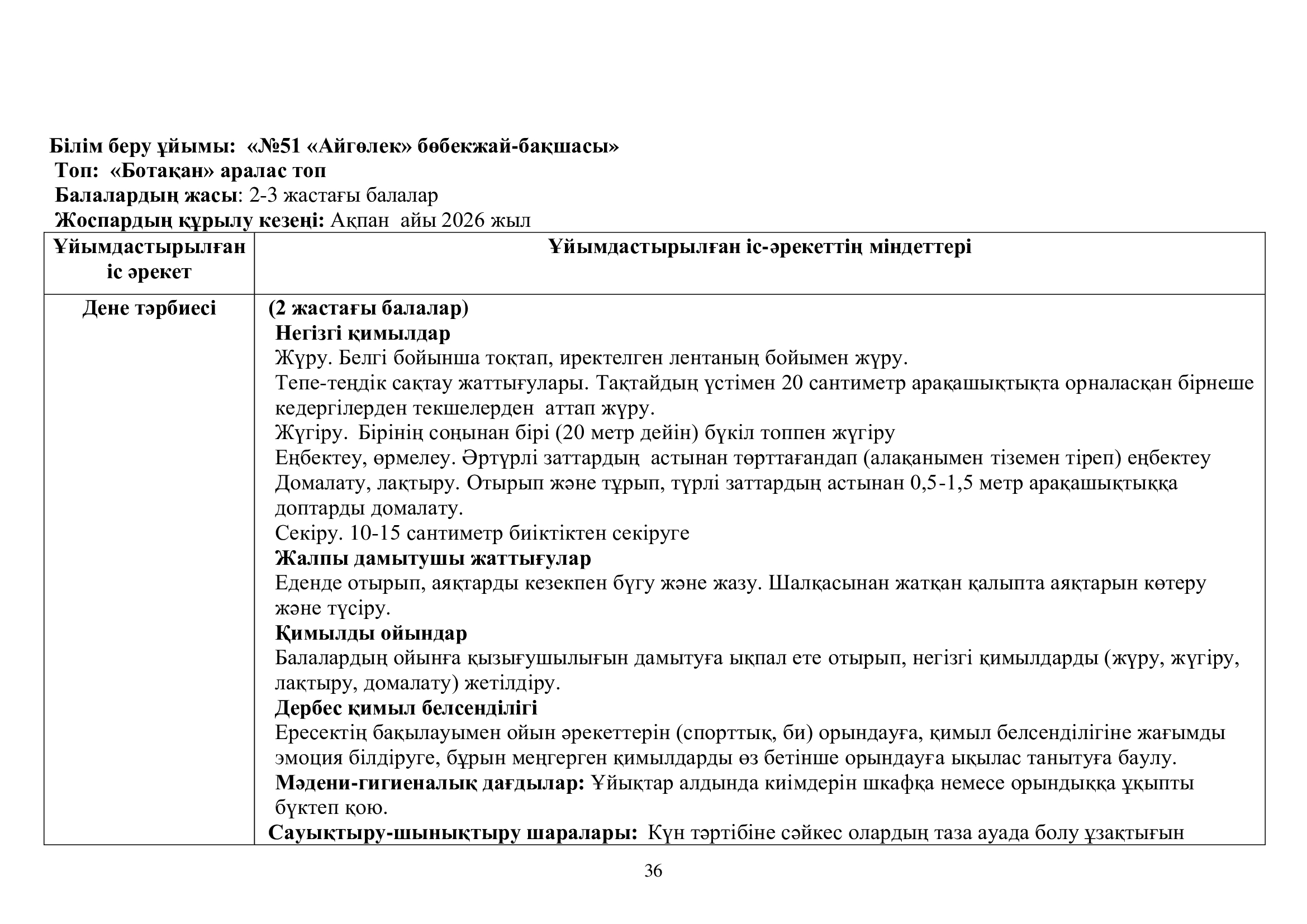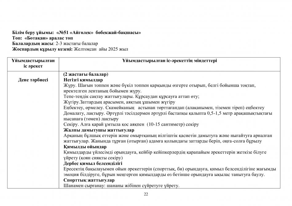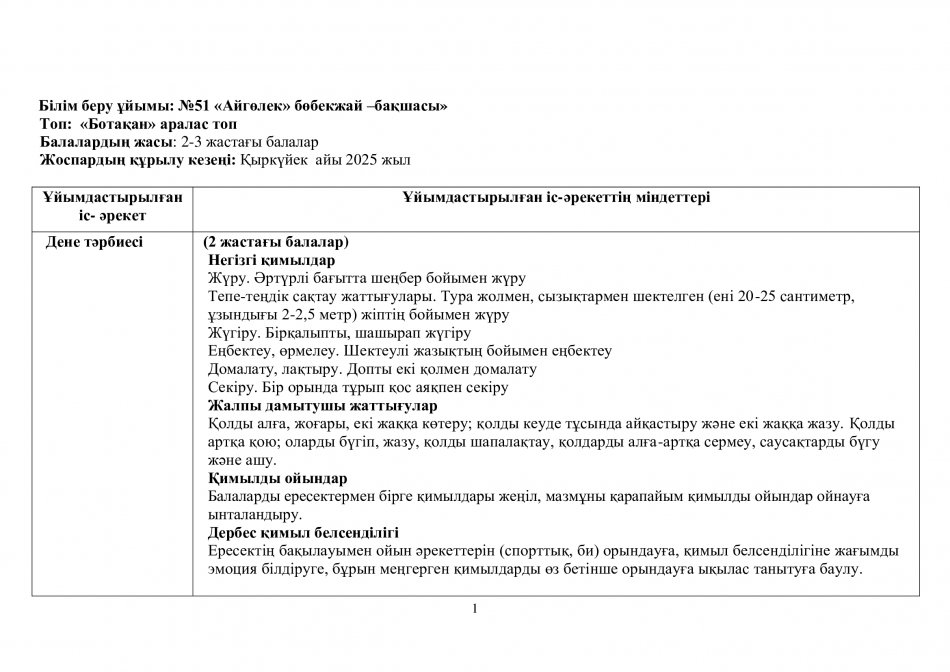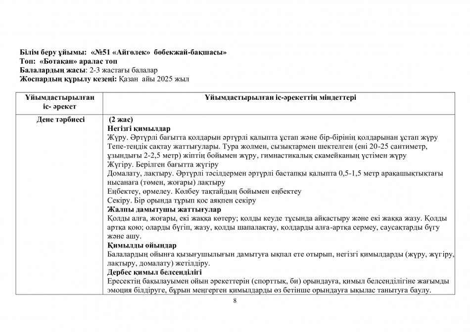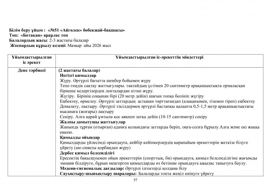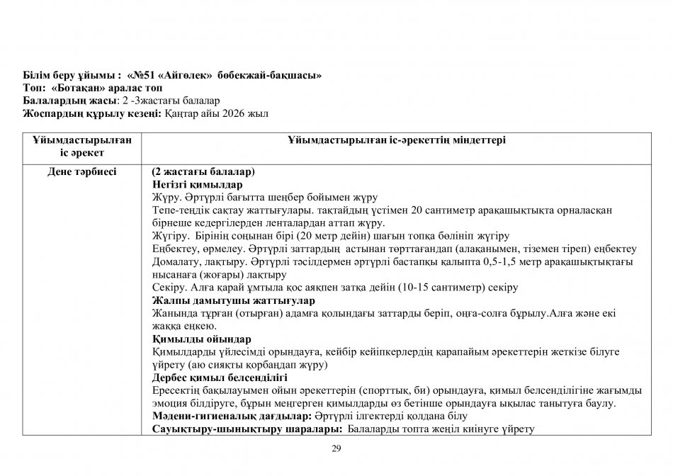 Перспективалық жоспар 2025-2026ж. "Ботақан" тобы