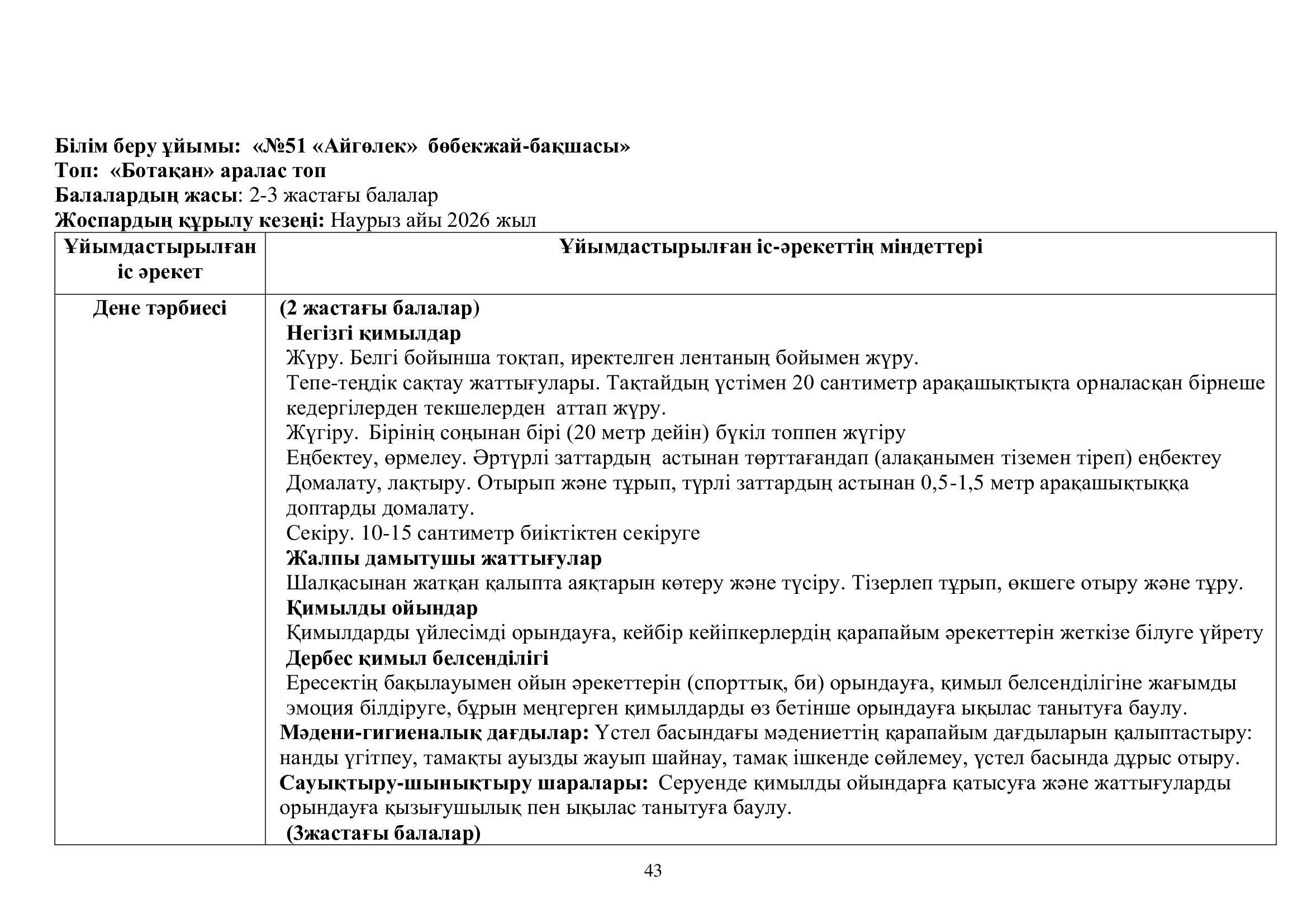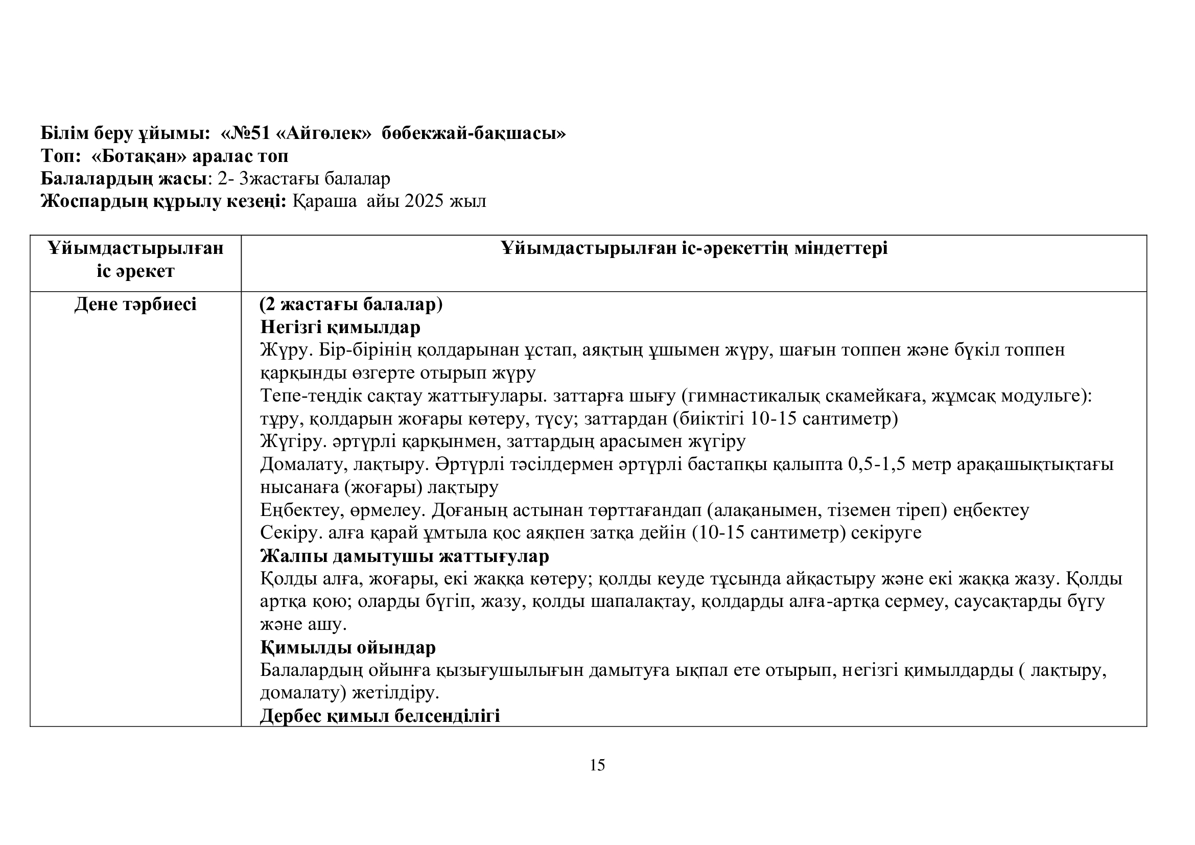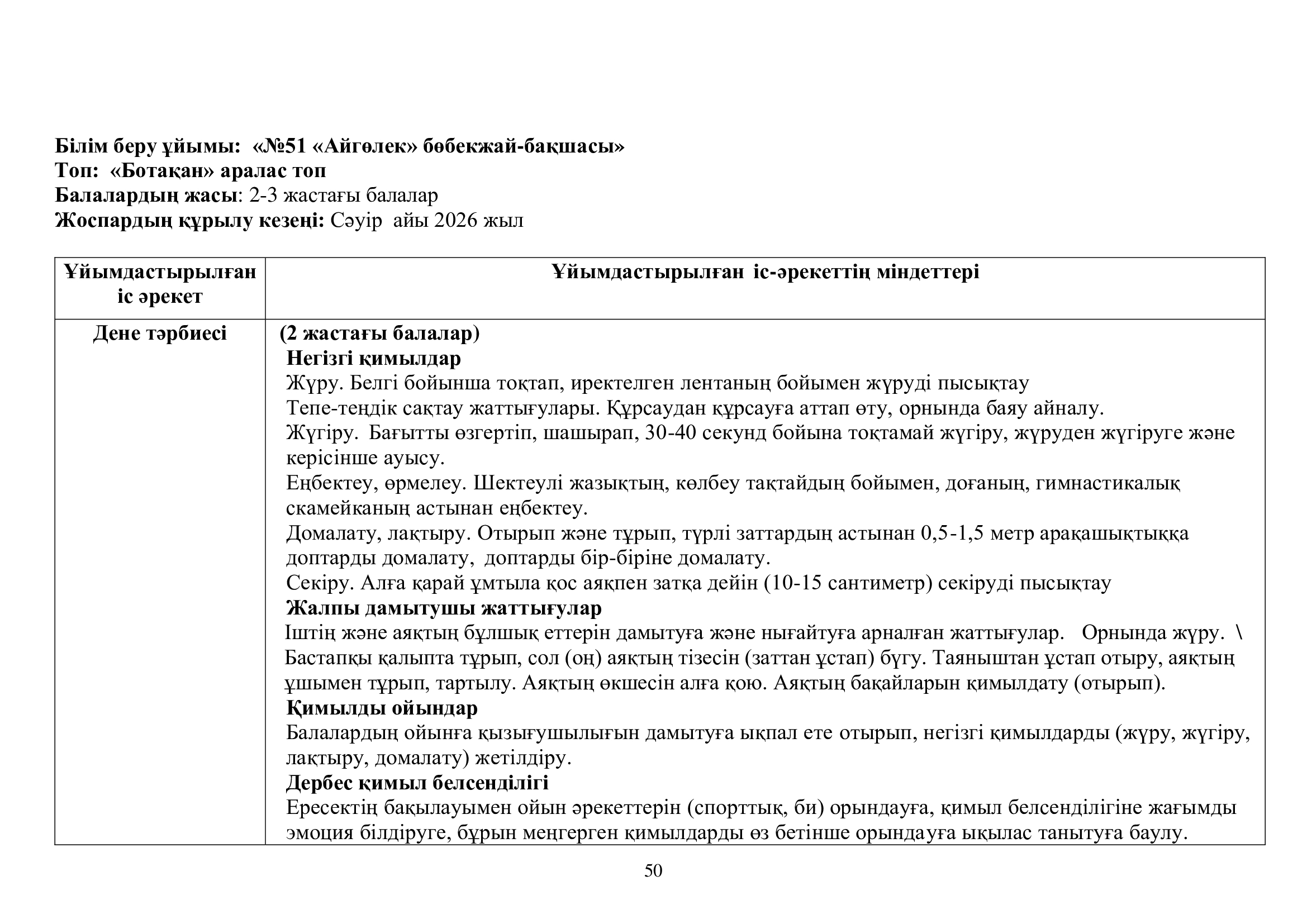 Перспективалық жоспар 2025-2026ж. "Ботақан" тобы