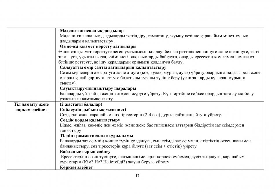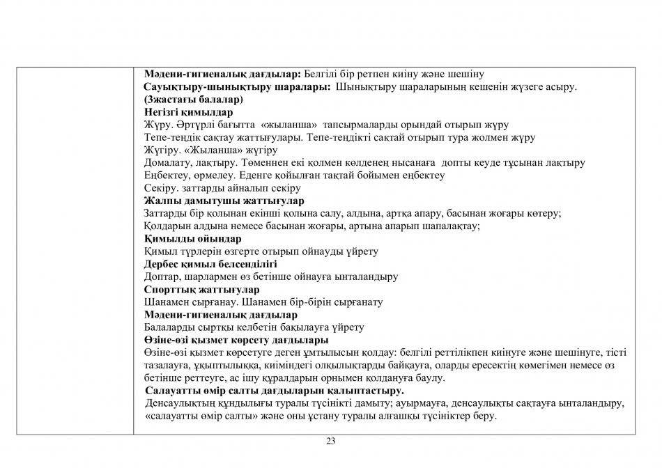 БАЛАЛАРДЫҢ БІЛІКТЕРІ МЕН ДАҒДЫЛАРЫНЫҢ ТІЗБЕСІ